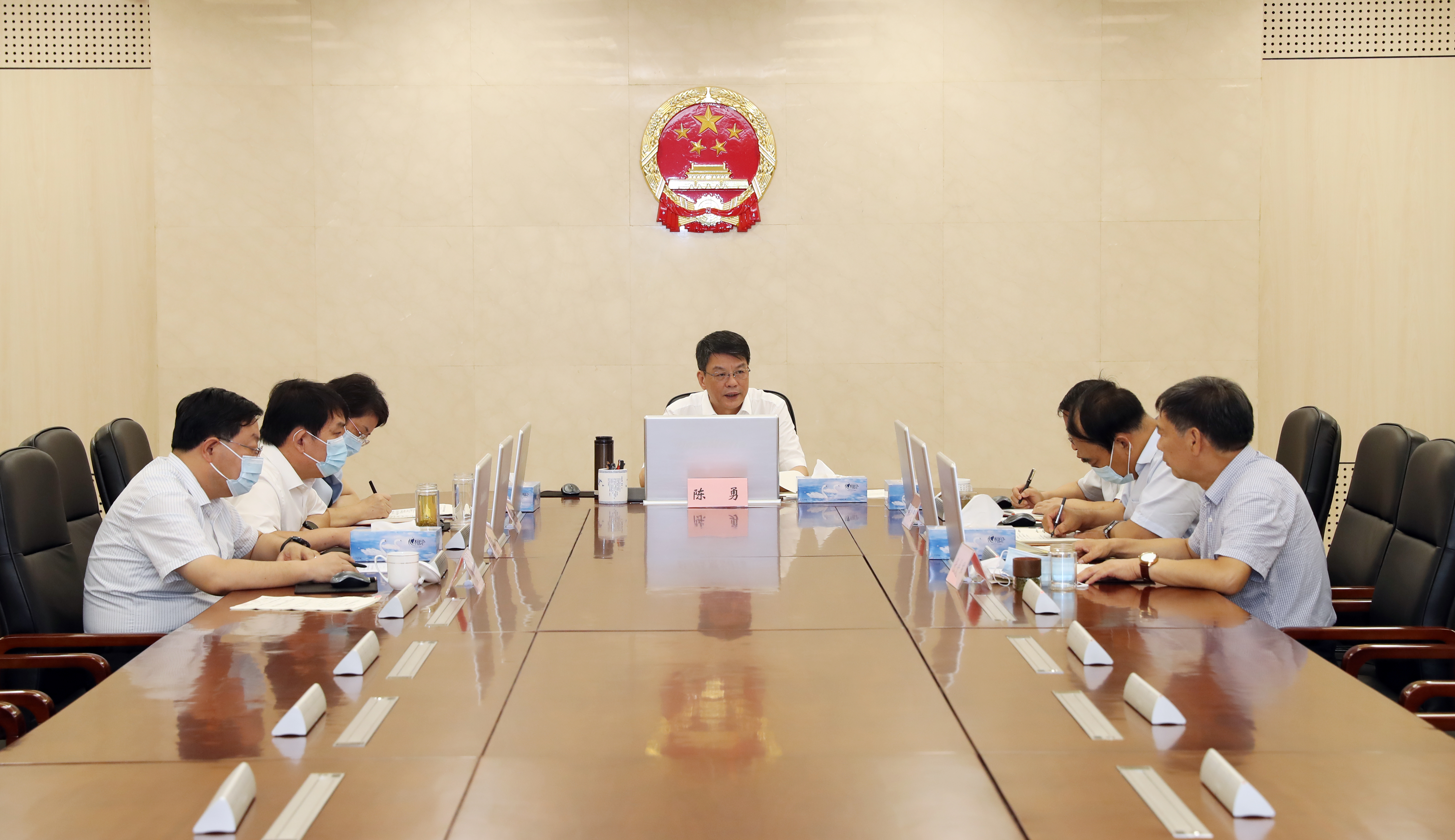7月16日,省检察院党组召开全面从严治党、党风廉政建设专题会商分析会,听取有关情况汇报,研究下步工作措施。省纪委监委驻省检察院纪检监察组组长傅清卿通报情况。省检察院党组书记、检察长陈勇主持会议并讲话。